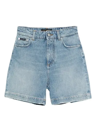 light blue button fastening belt loops five pockets tonal stitching logo plaque