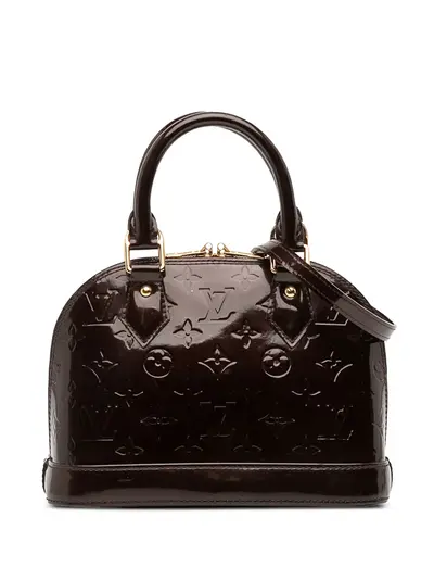 vernis leather body rolled leather top handles top zip around closure clochette interior slip pocket purple Serial Number: SD4143 Inclusions: shoulder strap. Condition: GOOD. This previously owned and used item is in good condition with minimal signs of use. This may include fading of material or plating and scratches. Please refer to the photos on this product page for a detailed view of the item, including any damages declared.