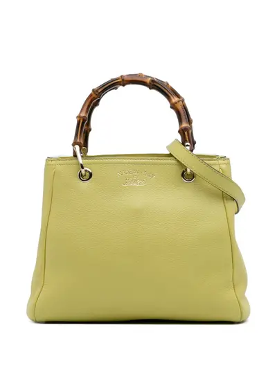 leather body bamboo handles detachable strap open top with magnetic snap closure interior zip and slip pockets yellow Serial Number: 336032 520981 Inclusions: shoulder strap. Condition: GOOD. This previously owned and used item is in good condition with minimal signs of use. This may include fading of material or plating and scratches. Declared Damages: Handle/Strap Feature(s) Minor Loose Stitching. Handle/Strap Feature(s) Minor Splitting. Please refer to the photos on this product page for a detailed view of the item, including any damages declared.