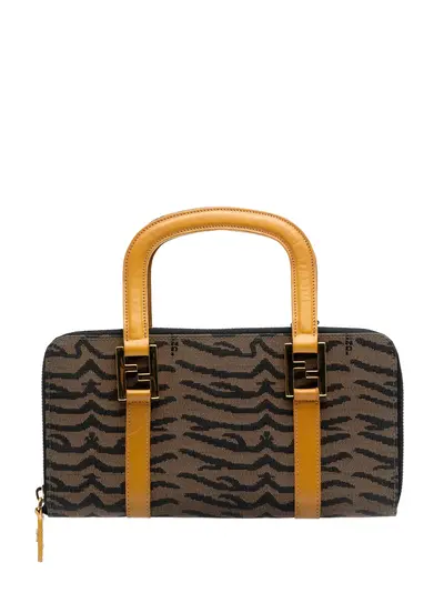 canvas body with leather trim flat leather handles zip around closure interior zip and slip pockets brown Serial Number: 2268-263470078 This item has no inclusions. Condition: GOOD. This previously owned and used item is in good condition with minimal signs of use. This may include fading of material or plating and scratches. Please refer to the photos on this product page for a detailed view of the item, including any damages declared.