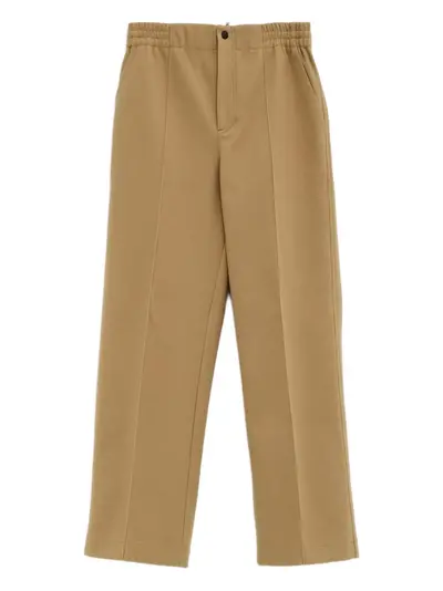 caramel brown elasticated waistband rear patch pockets button fastening logo detailing