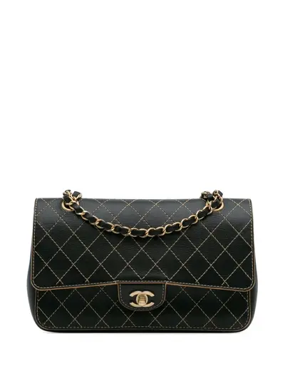 stitched calf leather body leather woven chain link straps double front flaps with interlocking Cs twist lock closure exterior back slip pocket interior zip and slip pockets black Serial Number: 24583137 This item has no inclusions. Condition: GOOD. This previously owned and used item is in good condition with minimal signs of use. This may include fading of material or plating and scratches. Please refer to the photos on this product page for a detailed view of the item, including any damages declared.