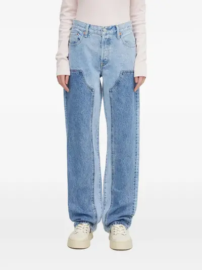 light blue panelled design rear logo patch five pockets tonal stitching belt loops
