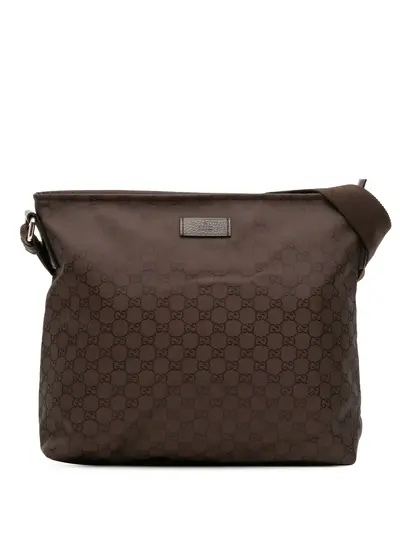 canvas body adjustable flat strap top zip closure interior zip and slip pockets brown Serial Number: 339569 213048 This item has no inclusions. Condition: EXCELLENT. This previously owned item is in near-perfect condition with no signs of damage or use. Please refer to the photos on this product page for a detailed view of the item, including any damages declared.