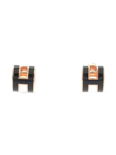 2010s rose gold tone black detailing 'H' motif post-back fastening engraved detailing These earrings come as a pair. Condition: GOOD. This previously owned and used item is in good condition with minimal signs of use. This may include fading of material or plating and scratches.