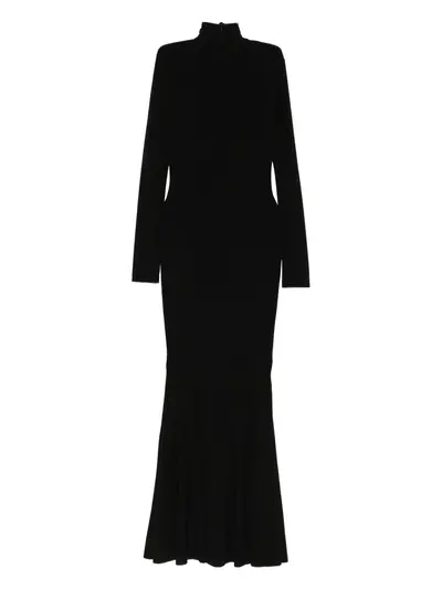 black roll neck long sleeves flared hem rear zip fastening maxi length