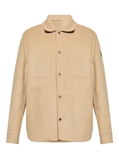light brown patch pockets button fastening turn-down collar long sleeves leather logo patch