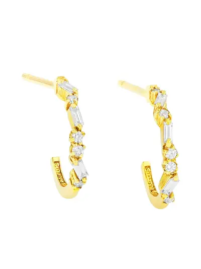gold-tone 18K yellow gold prong-set baguette-cut diamonds prong-set round-cut diamonds post back fastening polished finish Normal everyday use and external agents may reduce the lustre of gemstones and gold surfaces. To maintain, use specific, non-abrasive products specially meant for cleaning jewellery. These earrings come as a pair.