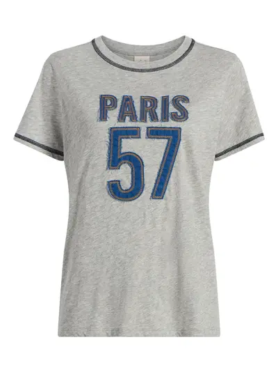 heather grey cotton Paris 57 denim appliqué short sleeves contrast stitching