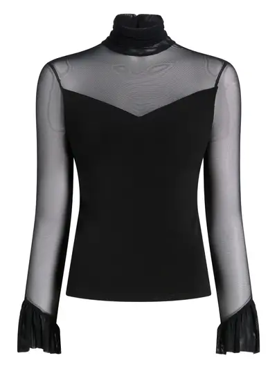 black ruffled cuffs high neck long sleeves keyhole back