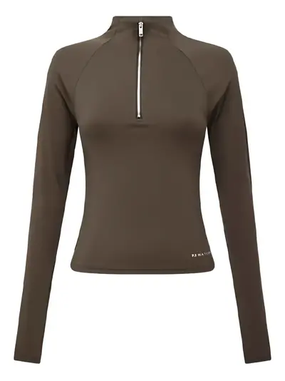 walnut brown quarter-zip fastening high neck long sleeves logo detail