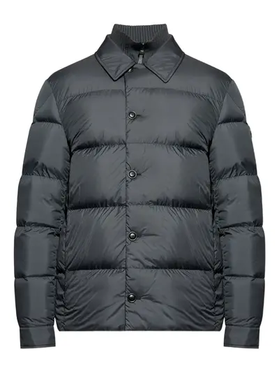 black padded design button fastening point collar long sleeves ribbed knit trim