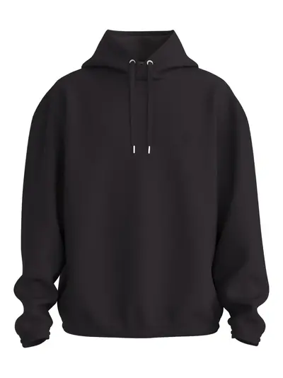 black cotton drawstring hood long sleeves ribbed cuffs
