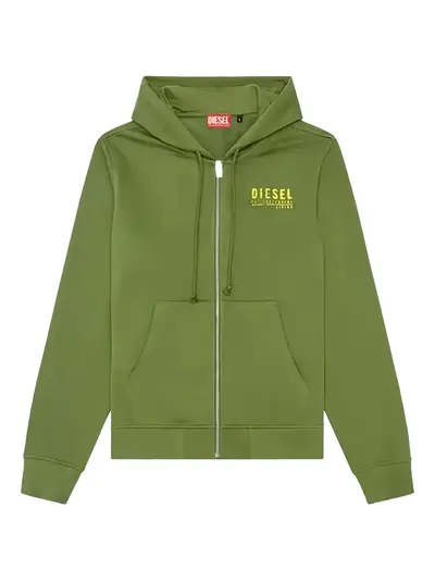 green zip fastening drawstring hood front pouch pocket logo detail long sleeves