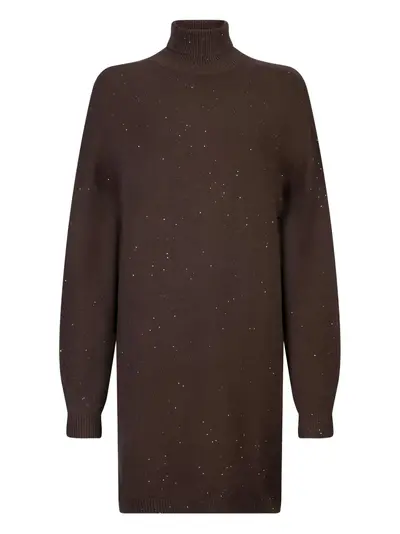 brown embellished roll-neck long-sleeves above-the-knee length straight hem