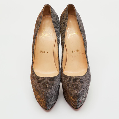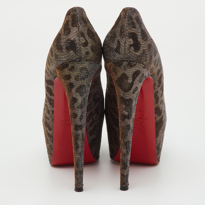 A daring masterpiece of excess, these Christian Louboutin Daffodile pumps command attention with glittering lurex leopard print fabric and a sky high platform silhouette. Each step reveals the iconic red sole—fiery, unapologetic, unforgettable. Designed for those who live to be seen.
