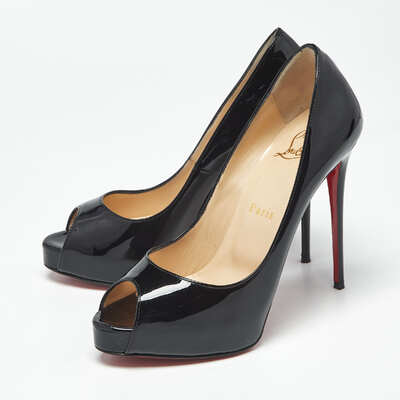 Christian Louboutin Black Patent Leather Very Prive Peep Toe Pumps Size 36 1235106 (чёрный, lpn31091059)