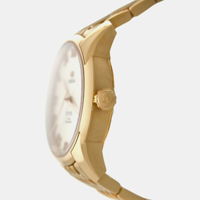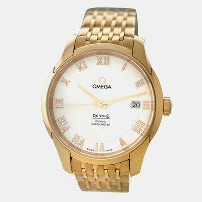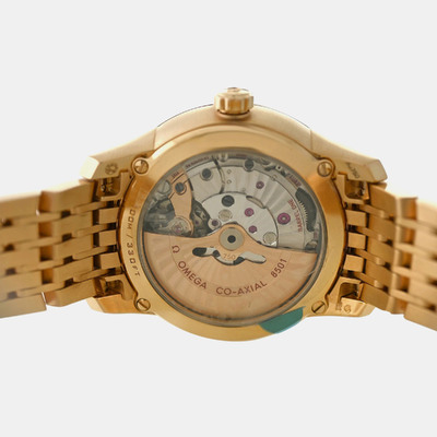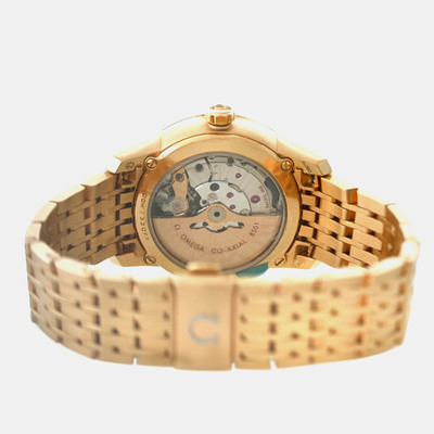 A refined expression of timeless elegance, this Omega De Ville exudes sophistication with its luminous dial set against a warm rose gold embrace. The gentle sparkle of white diamonds imparts a discreet yet captivating allure, perfectly suited for the modern gentleman who values understated luxury and impeccable craftsmanship.