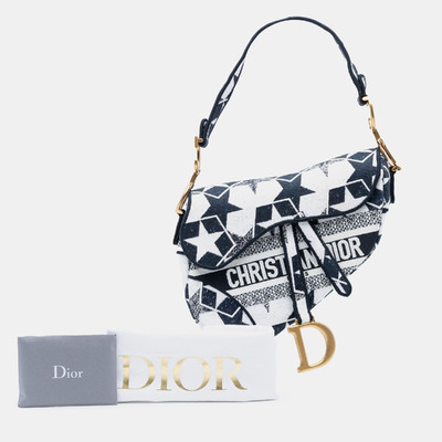 Dior White Embroidered Canvas Stars Saddle Bag 1234584 (белый, lpn31091130)