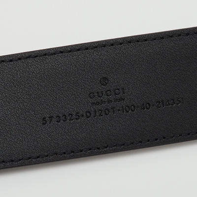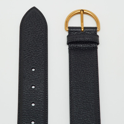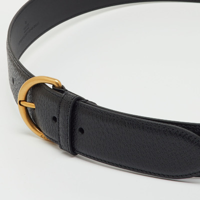 A wardrobe essential by Gucci, this black leather belt features a sleek gold tone buckle. Made in Italy, it delivers everyday sophistication and pairs effortlessly with both formal tailoring and off duty denim.