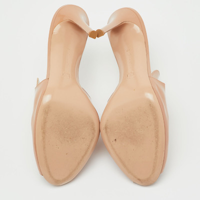 Beige patent leather and high heels — a pairing that feels effortless yet striking. These Gianvito Rossi mules slip on with ease, their glossy finish catching light as you move. The peep toe adds just a hint of playfulness, making them perfect for everything from weekday dinners to late night plans.
