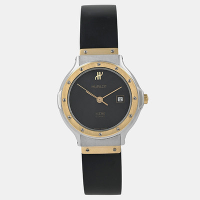 Hublot MDM Classic 1391.2 Quartz Black 18k Yellow Gold Stainless Steel Women's Wristwatch 28 mm 1234773 (чёрный, lpn31091159)