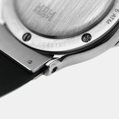 This Hublot MDM Classic 1391.2 offers a compact 28 mm case made from stainless steel and 18k yellow gold. The black dial and quartz movement combine reliability with the understated charm of Hublot’s early designs.