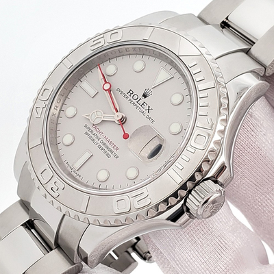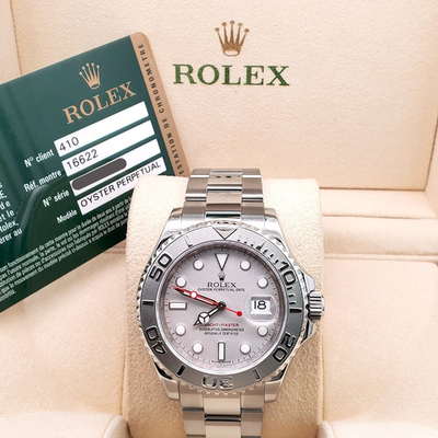 Refined yet adventurous, the Rolex Yacht Master pairs a platinum bezel with stainless steel for a distinctive nautical flair. At 40 mm, this watch captures the spirit of the sea while offering an elegant statement piece for those who navigate life with effortless grace.