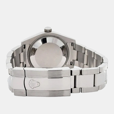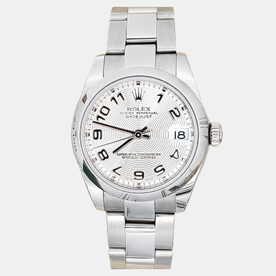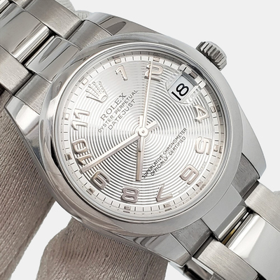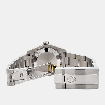 This pre owned Rolex Datejust showcases a sleek silver dial housed in a 31mm stainless steel case. Powered by automatic movement, it offers reliable performance with understated elegance. Authentic and pre owned, it’s an ideal timepiece for women seeking timeless style.