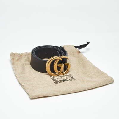 Gucci’s GG Marmont belt in black leather remains a modern icon. Defined by its antique gold tone double G buckle, it’s a versatile finishing touch to both sharp and relaxed looks.