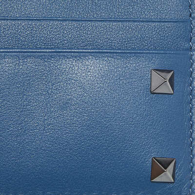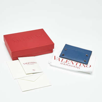 This Valentino card holder is conveniently designed for everyday use. Crafted from blue leather, the piece comes with two slots and one main compartment. This stylish piece is complete with the famous Rockstud embellishments.
