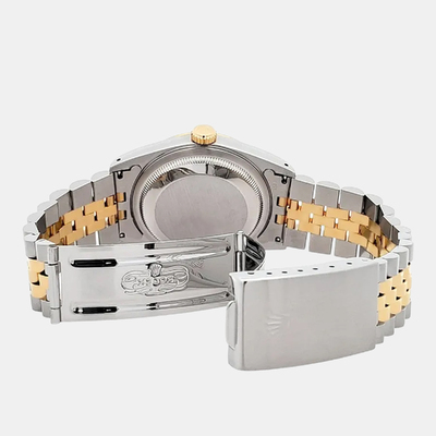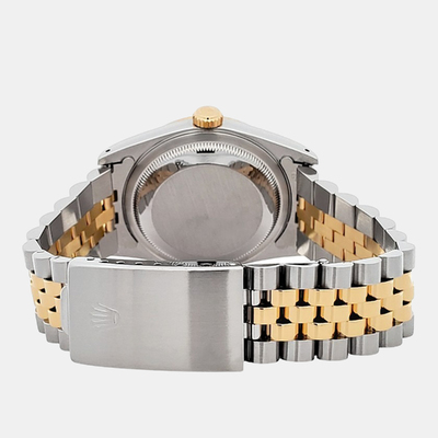 An emblem of prestige, the Datejust 16233 pairs a radiant champagne dial with delicate diamond accents, creating a luminous statement of understated luxury. Perfectly poised on the wrist at 36 mm, this watch exudes an air of graceful confidence, capturing the essence of Rolex’s dedication to beauty and precision.