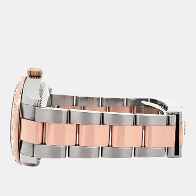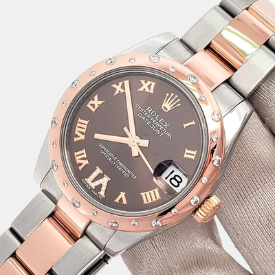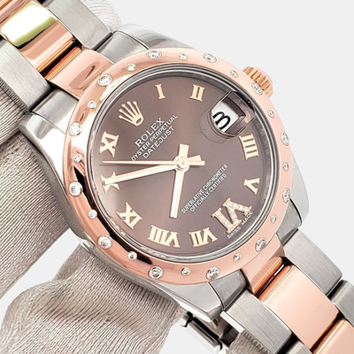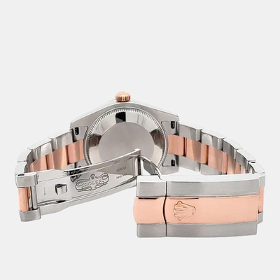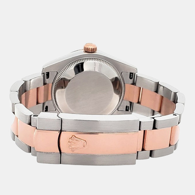 Pre owned Rolex Datejust featuring a 26mm two tone case of 18k yellow gold and stainless steel. Its classic dial and automatic movement exemplify Rolex precision and attention to detail. The compact size and sophisticated combination of metals make it an elegant statement piece for any woman who values subtle luxury.