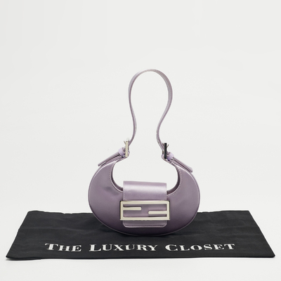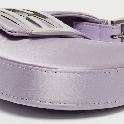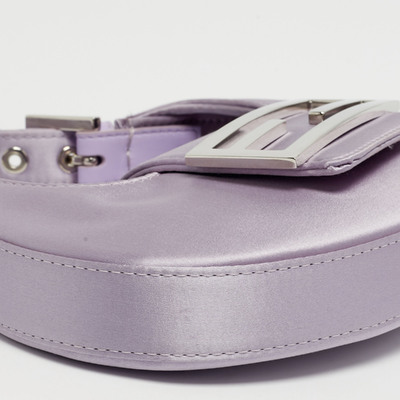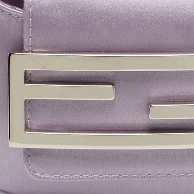 Sweet and sophisticated, the Fendi Mini Cookie bag shines in lilac satin with curved contours and sleek metallic accents. A playful touch of luxury for evenings and beyond.