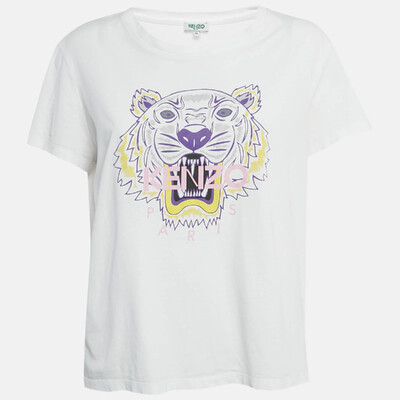 Kenzo’s classic cotton T shirt is emblazoned with the signature Tiger logo, combining streetwear energy with timeless design. Its relaxed fit and crisp white base make it a wardrobe essential with effortless visual impact.