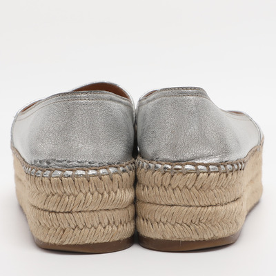 Silver leather meets a jute wrapped platform — Prada’s take on the espadrille feels lighthearted yet elevated. They catch the light beautifully, whether you’re strolling through a resort town or a city street after rain.