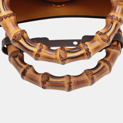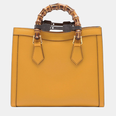 Gucci’s Bamboo Diana Satchel in smooth leather is defined by its curved bamboo handles and removable straps. The structured shape offers room for daily items while maintaining a signature heritage detail.