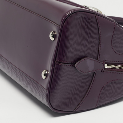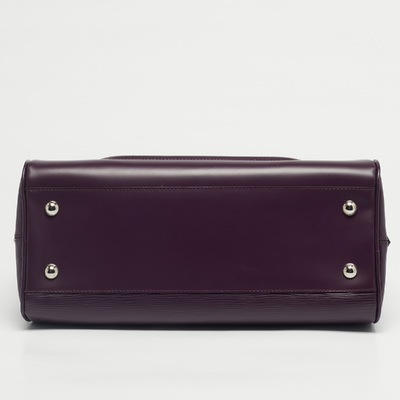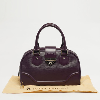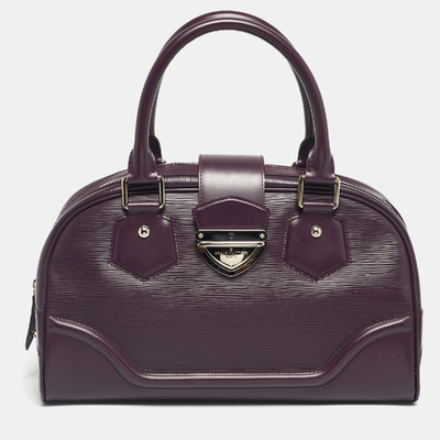 Louis Vuitton’s Montaigne GM bag is rendered in textured Cassis Epi leather, known for its resilience and subtle sheen. The structured bowling silhouette features dual top handles, polished silver tone hardware, and a spacious interior, reflecting the maison’s mastery of practical sophistication.