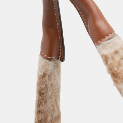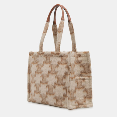 This soft mohair tote showcases the Triomphe logo detail with leather handles and a roomy interior. Lightweight and comfortable for all day use.
