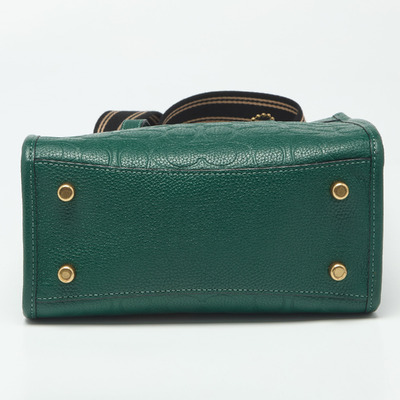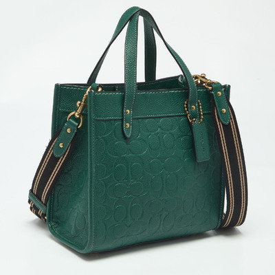 The Coach Field Tote in green embossed leather blends practical design with style. Its spacious interior holds daily essentials with ease, while the signature pattern hints at heritage. Smooth leather handles and two detachable straps provide versatile options for carrying it.