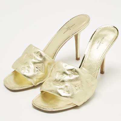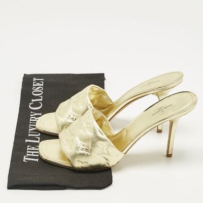 Louis Vuitton Gold Monogram Leather Revival Slide Sandals Size 39 1234193 (lpn31091399)