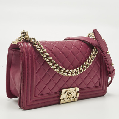 Soft pink quilted leather and the iconic CC closure make this Chanel Medium Boy Flap bag a true collector’s gem. The chain and leather strap drapes with effortless charm, while its structured shape ensures it stands out as a statement of timeless allure.