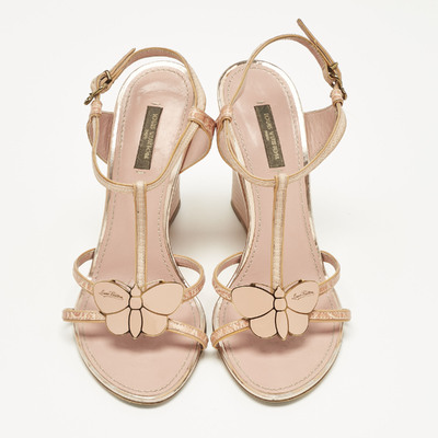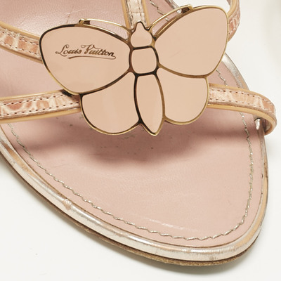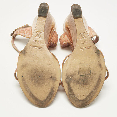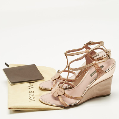 Louis Vuitton Pink Crocodile Leather and Lizard Leather Butterfly Wedge Sandals Size 38.5 1234056 (розовый, lpn31091433)