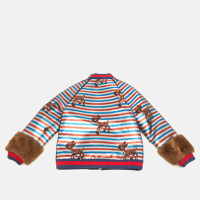 Gucci Kids Multicolor Striped Glitter Faux Fur Trim Bomber Jacket 10Yrs 1233918 (lpn31091481)