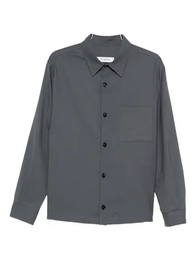 grey chest patch pocket front button fastening long sleeves buttoned cuffs straight hem