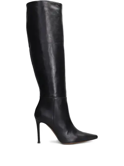 black stiletto heel pointed toe knee-high shaft tonal stitching smooth finish