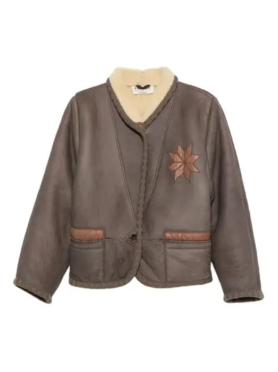 1980s brown shearling collar star appliqué front button fastening side flap pockets long sleeves Condition: GOOD. This previously owned and used item is in good condition with minimal signs of use. This may include fading of material or plating and scratches.
