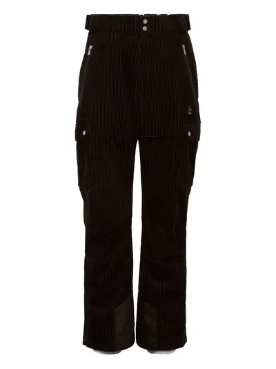 brown corduroy texture cargo pockets zip fastening button fastening padded lower legs