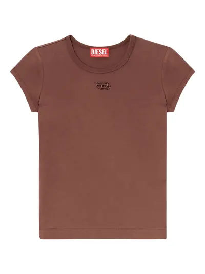 brown embroidered logo laser-cut detail short sleeves round neck