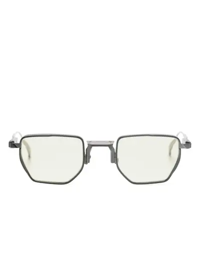 gunmetal grey nose pads UV-protective lenses curved tips These glasses come with a protective case.